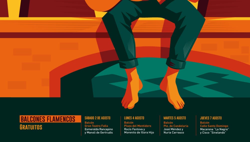 Como preludio el sábado 2 de agosto a las 22 horas y desde el Balcón del Gran Teatro Falla se celebrará el primero de los cuatro espectáculos enmarcados en el programa Flamenco en los Balcones y que tendrá como protagonistas los cantes de Esmeralda Rancapino y Manoli de Gertrudis, la guitarra del Niño de La Leo y las palmas de Luis de Pijote y Ramón del Puerto.