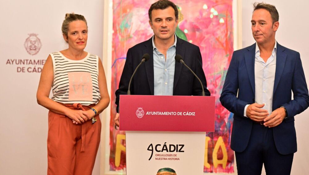 El alcalde de Cádiz, Bruno García, junto a la teniente de alcalde de Cultura del Ayuntamiento de Cádiz, Maite González, y el primer teniente de alcalde, José Manuel Cossi, han dado a conocer este jueves la programación cultural que se desarrollará del 13 al 22 de septiembre con motivo de la celebración de la primera edición de ‘Orgullos@s de nuestra historia’, que en 2024 estará dedicado a Cádiz Fenicia. El alcalde ha destacado la apuesta del equipo de Gobierno “por un proyecto que nos debe servir para que nos sintamos orgullosos de nuestra historia y que haya participación por parte de la ciudadanía, a la vez que también nos debe servir de atractivo, porque el modelo de esta ciudad va orientado hacia la cultura, y desde la cultura hacemos un turismo sostenible”. A su vez, la edil de Cultura, Maite González, ha subrayado que esta iniciativa “es una de nuestras grandes apuestas para realzar y fortalecer la historia, la cultura y el patrimonio de la ciudad y hemos hecho un gran esfuerzo por incluir espectáculos de gran nivel y proyectos participativos que involucran a muchas personas y artistas de Cádiz”