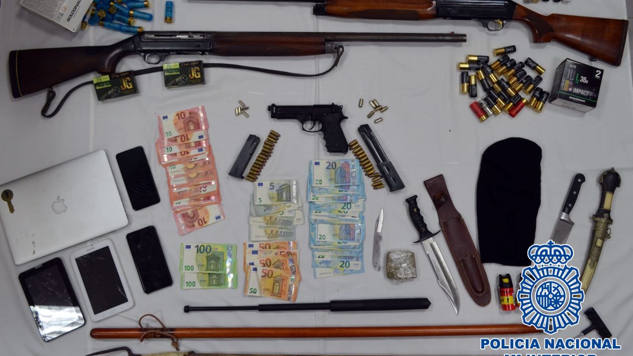 Tras la presentación de la denuncia y la realización de las gestiones investigativas, con las que los agentes lograron la identificación de los autores y la localización de los domicilios en los que residían, fue solicitado al Juzgado de Instrucción en funciones de guardia mandamientos para la práctica de las detenciones y la realización de los registros domiciliarios correspondientes. Dichos registros dieron como resultado la incautación de tres armas de fuego, una pistola y dos escopetas, además otras armas blancas, sustancias estupefacientes y dinero en efectivo cuyo origen podría tener origen en la venta ilegal de la droga con la que presumiblemente traficaban. Los detenidos fueron puestos a disposición Judicial para la instrucción de la causa, siendo puestos en libertad con cargos a la espera de la fijación de fecha para celebración del juicio correspondiente.