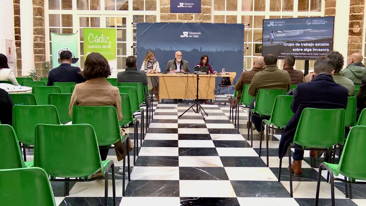 El vicepresidente segundo de la Diputación de Cádiz y responsable del Área de Transición Ecológica y Desarrollo a la Ciudadanía, Javier Vidal, ha confirmado la continuidad de las ayudas a los municipios gaditanos afectados por el alga invasora Rugulopterix okamurae. Ha sido durante su intervención ante el Grupo de Trabajo estable sobre el alga invasora, cuyos integrantes se han dado cita en el Palacio Provincial para celebrar su reunión anual. El objetivo del encuentro ha sido analizar la situación actual y recopilar las necesidades planteadas por los diferentes representantes municipales congregados al efecto. En apenas unos años -justo hace diez que se detectó por primera vez esta especie en aguas del Estrecho- la proliferación del alga asiática en el litoral gaditano se ha convertido en un “gravísimo problema en nuestras costas”, en palabras de Vidal, que afecta al equilibrio marino, los recursos pesqueros, el turismo y el medio ambiente.
