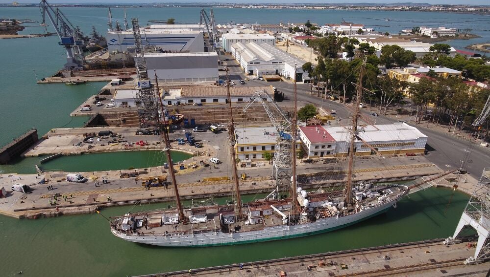 El Buque Escuela de la Armada Española, el Juan Sebastián Elcano, se encuentra en el astillero de Navantia en San Fernando donde será sometido a la varada reglamentaria habitual tras la finalización de su crucero de instrucción alrededor del mundo. El navío llegó al dique en el que habitualmente se somete a las reparaciones a final de la pasada semana, y allí permanecerá aproximadamente hasta mediados de octubre. Las principales actuaciones a cargo de Navantia consistirán en el pintado tanto de la obra viva como muerta; se revisarán y, en su caso serán reparadas las válvulas de fondo, el timón y el eje de cola.