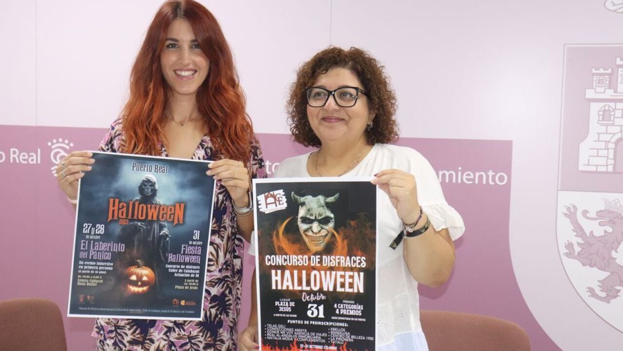 La concejala de Cultura y Fiestas de Puerto Real, Nazaret Ramírez Ruiz, junto a Pilar Rosendo Lino, en representación de la Asociación de Comerciantes y Empresarios de Puerto Real (ACE), han presentado los actos previstos en Puerto Real para celebrar Halloween. Los días 27 y 28 de octubre, en el Centro Cultural Rosa Butler desde las siete de la tarde hasta las doce de la noche, se podrá disfrutar del ‘Laberinto del pánico’, un evento inmersivo en primera persona que podrán experimentar las personas mayores de 16 años. Se realizarán pases de unos 15 minutos, por grupos y no se precisa de inscripción previa.
