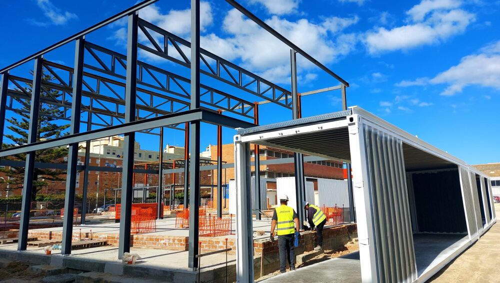 Ya puede observarse el montaje de los primeros contenedores marítimos reciclados en la obra del edificio de Zona Base que va a acoger la incubadora de alta tecnología en torno a la Economía Azul, Incubazul, ubicado en la parcela de la antigua Ibérica Aga en el polígono exterior y que será todo un referente de la economía circular en la ciudad de Cádiz. Los trabajos, que están a cargo de la empresa Díaz Cubero, avanzan a buen ritmo y se mantiene la previsión de finalización de los mismos para el último trimestre de este año. En total, van a ir llegando en las próximas semanas los 54 contenedores en grupos de tres en tres, una vez que están siendo preparados previamente en taller para ser recuperados.