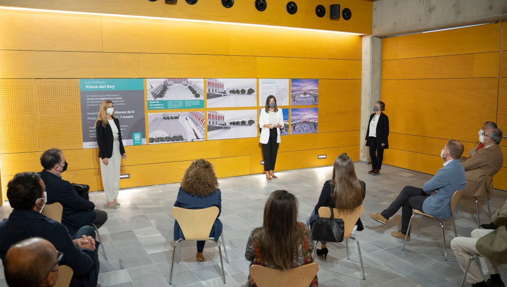 Las obras para remodelar la Plaza del Rey y convertir este punto neurálgico de la ciudad de San Fernando en un espacio abierto, más amplio y diáfano, con mayor calidad urbana y diseñado para ser punto de encuentro de la ciudadanía, motor de la economía local y acoger todo tipo de celebraciones y actividades, darán comienzo después de este verano. La alcaldesa, Patricia Cavada, acompañada de la delegada de Desarrollo Urbano, Claudia Márquez, y de María Jesús Albarreal, miembro de Alt-Q Arquitectura, equipo redactor del proyecto de remodelación de este espacio, han presentado hoy los detalles de esta actuación que contará con una inversión de 1,4 millones de euros y que una vez se inicien los trabajos, que se van a licitar de forma inminente, tendrá un plazo de ejecución de siete meses. A la presentación han asistido representantes de la Federación de Asociaciones de Vecinos, de los comerciantes y hosteleros de Asihtur y Acosafe, así como de entidades como la Federación Isleña de Peñas y Entidades (FIPE).