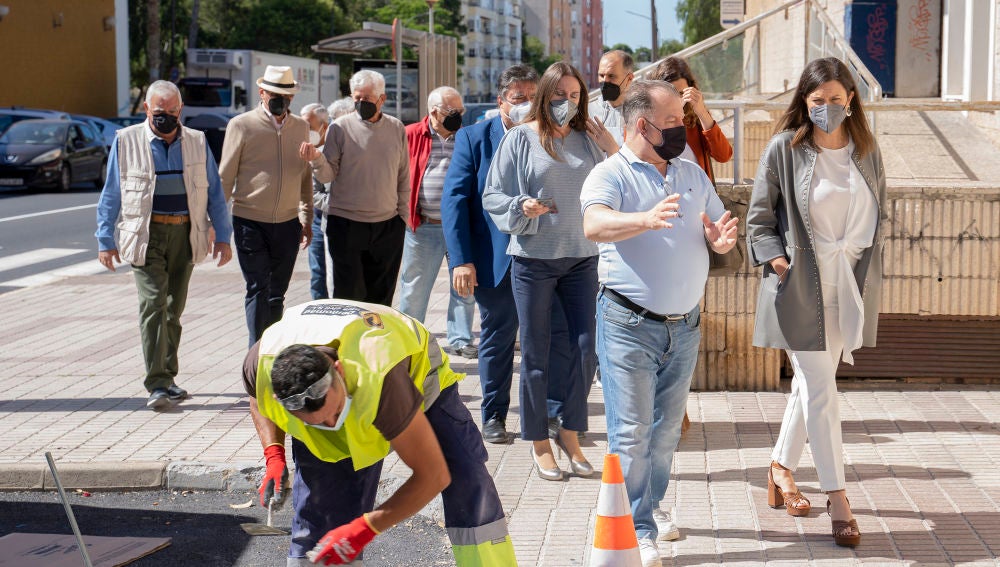 La alcaldesa, Patricia Cavada, ha visitado hoy jueves las obras que el Ayuntamiento ha terminado de ejecutar en la calle José Ramos Borrero, incluidas en el Programa de Refuerzo de Firmes y Asfaltado y que comprende la actuación en una veintena de calles y avenidas de la ciudad. Cavada ha estado acompañada por la teniente de alcaldesa, Regla Moreno, los concejales de Desarrollo Urbano e Infraestructura y Mantenimiento Urbano, Claudia Márquez y Javier Navarro, respectivamente, el presidente de la Federación de Asociaciones de Vecinos “Isla de León”, y otros representantes de la federación, así como por los presidentes de las asociaciones de vecinos Las Palmeras, Constitución y Los Olivos.