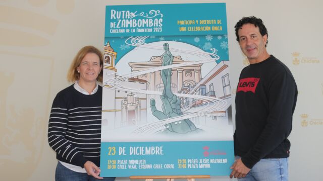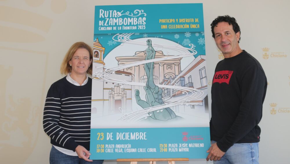 La delegada municipal de Fomento Económico, Manuela Pérez, y el representante de Iberoartis, Jacob Guerrero, han presentado la primera edición de la Ruta de Zambombas, que se celebrará este sábado 23 de diciembre en horario de tarde. Una actividad a través de la cual la ciudadanía podrá disfrutar de diferentes zambombas en distintas ubicaciones del centro de Chiclana y a las que se irán uniendo diferentes artistas.