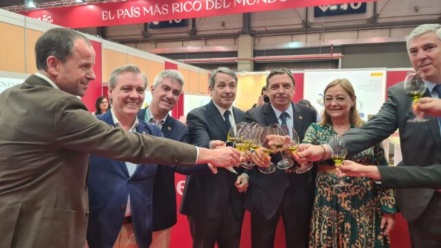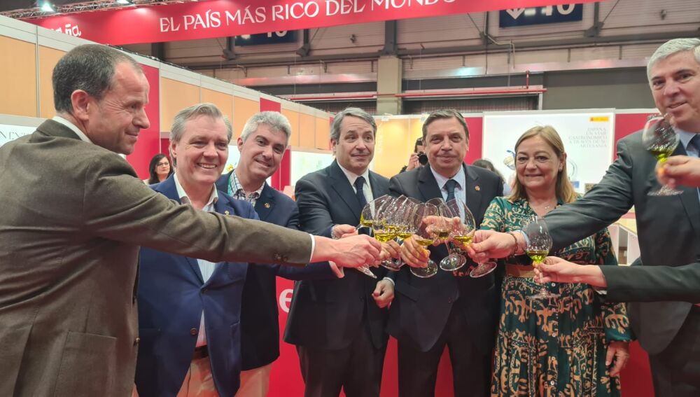 El Ministro de Agricultura, Luis Planas, y la consejera de Agricultura, Carmen Crespo, brindan con el AOVE por una productiva feria y el buen desarrollo del sector.