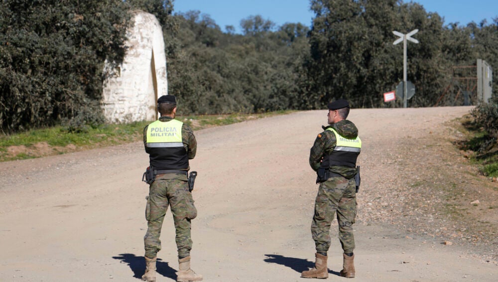 Militares en las cercanías de la base de la Brigada "Guzmán el Bueno" X de Cerro Muriano el día del accidente. | EFE/Salas