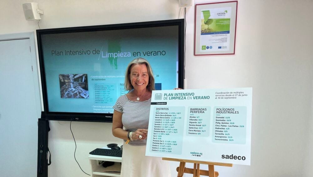 El plan contempla la coordinación de los múltiples servicios que presta Sadeco, de manera que trabajarán todas las unidades de la empresa municipal en todos los barrios de Córdoba: polígonos industriales y barriadas periféricas. La presidenta de Sadeco, Isabel Albás, ha anunciado que se harán 150 nuevos contratos para el verano para atender a tareas como limpieza de alcorques, de los que ya se han adecentado más de 6.000 de los 53.141 que existen en la ciudad. Control de plagas, mantenimiento de jardines, inspección de higiene ambiental y animal o baldeo mecánico y húmedo, porque la falta de agua no permite baldear tan alegremente como en años pasados.