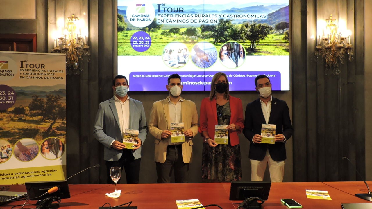 Caminos de Pasión presenta el I Tour de Experiencias gastronómicas y rurales formado por un total de doce actividades y cuya celebración tendrá lugar los días 22, 23, 24, 29, 30 y 31 de octubre en los municipios que componen la ruta. La presentación de este atractivo programa ha tenido lugar hoy en la Casa de la provincia en Sevilla, durante un acto en el que han participado la presidenta de Caminos de Pasión, RosarioAndújar Torrejón, y el diputado de Cultura y Ciudadanía de la Diputación de Sevilla y vicepresidente de la Casa de la Provincia, Alejandro Moyano Molina. Los cambios en el comportamiento del viajero hacia un turismo de proximidad han favorecido el aumento del interés por un estilo de viaje más pausado, centrado en la conexión con la cultura local y la naturaleza. Por ello, las experiencias en el destino donde el viajero aprende e interactúa con la población local están al alza. El interés por este tipo de turismo hace que la oferta existente en los municipios de Caminos de Pasión cobre más valor si cabe, ofreciendo al visitante una muestra del estilo de vida de sus habitantes y de la actividad agrícola que se desarrolla en estas localidades. De igual modo, el turismo gastronómico se ha convertido en los últimos años en un gran atractivo para los visitantes ya que este tipo de experiencias permiten conocer y saborear in situ productos tan identificativos de nuestra tierra como los aceites, vinos, dulces o quesos, entre otros muchos. Asimismo, este tipo de oferta genera un turismo más sostenible y respetuoso con el entorno que contribuye al desarrollo y al cuidado de los lugares que visita. En palabras de Andújar Torrejón, “la ruta debe continuar trabajando en esta línea para poder ofrecer actividades de gran valor añadido en el destino que son a su vez didácticas, ya que muestran la cultura local, e igualmente permiten ese intercambio con la población local, además de suponer una fuente de ingresos adicional para estas empresas que en su conjunto contribuyen a la sostenibilidad e incrementa el valor sobre nuestra gastronomía, nuestras actividades agroalimentarias y la buena percepción hacia la calidad y el valor artesanal de estos productos”. La programación incluye una visita guiada a viñedos y bodega Marcelino Serrano en Alcalá la Real (Jaén), con una Cata de vinos con degustación de aperitivos; una visita guiada a fábrica de cerveza artesana Tierra de Frontera en Alcalá la Real (Jaén), con una degustación de cervezas; una visita a almazara y olivar Cortijo Suerte Alta en Baena (Córdoba), con una cata dirigida de AOVE; una visita a Subbética Ecológica en Cabra (Córdoba), con una Visita a la Eco Tienda y Obrador Ecológico con degustación de productos; una visita a finca de aloe vera y lavanda, Las Asociación para el Desarrollo Turístico de la Ruta Caminos de Pasión www.caminosdepasion.comcomunicacion@caminosdepasion.comCoronas en Carmona (Sevilla), con un paseo guiado a través de diferentes espacios de la finca, para conocer el proceso de transformación y obtención de productos del aloe vera, con degustación final; una visita a Olivar Ecológico 1948 Óleum en Écija (Sevilla), con una cata dirigida de AOVE; una visita a la finca Nava de Silpia en Las Navas del Selpillar, Lucena (Córdoba), con un taller de aderezo de aceituna con recogida de fruto en campo y desayuno molinero; una visita y degustación a la fábrica de quesos artesanales Quesí en Osuna (Sevilla); una visita al olivar Herriza la Lobilla en Osuna (Sevilla)con una cata dirigida de AOVE Premium en almazara; una visita al campo a olivos milenarios y cata dirigida de AOVE, que ofrece Aceites Vizcántar en Priego de Córdoba (Córdoba); una visita teatralizada a Bodegas Delgado en Puente Genil (Córdoba), con degustación de vinos D.O.P. Montilla Moriles copa y botella de regalo; y una visita a la fábrica de membrillo La Góndola en Puente Genil (Córdoba) con una cata dirigida de membrillo. Caminos de Pasión es una ruta cultural que combina historia, patrimonio artístico, tradiciones, gastronomía, artesanía y naturaleza en diez municipios emblemáticos del interior de Andalucía. Todos tienen en común su devoción y hermosas tradiciones de la Semana Santa. Los pueblos que la integran son Alcalá la Real en Jaén, Baena, Cabra, Lucena, Priego de Córdoba y Puente Genil en Córdoba, y Carmona, Écija, Osuna y Utrera en Sevilla. Cada uno está ubicado en paisajes notables con fantásticas rutas de senderismo que conducen a espaciosnaturales protegidos, que van desde zona de lagunas, campiña o baja montaña. Las Vías Verdes o el Gran Sendero permiten explorar el área en bicicleta, a caballo o caminando.