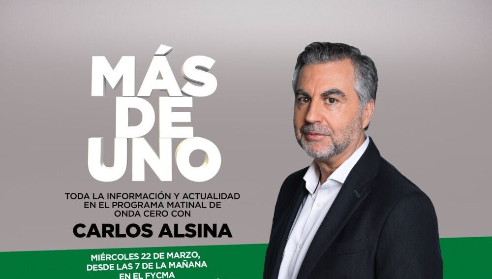 Este miércoles 22 de marzo estará en Málaga Carlos Alsina en directo. El programa se emitirá desde el Palacio de Ferias y Congresos de Málaga. La entrada será libre hasta completar aforo.