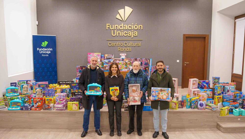 Fundación Unicaja ha hecho entrega de más de 700 juguetes nuevos para menores de familias vulnerables malagueñas, reunidos a través de su campaña navideña de donación y recogida. La Fundación ha adquirido la mayor parte de estos juguetes con la colaboración de El Corte Inglés. A éstos se han sumado los que ha donado la ciudadanía durante la recogida solidaria en su centro cultural de Málaga capital y el Museo Fundación Unicaja Joaquín Peinado de Ronda.
