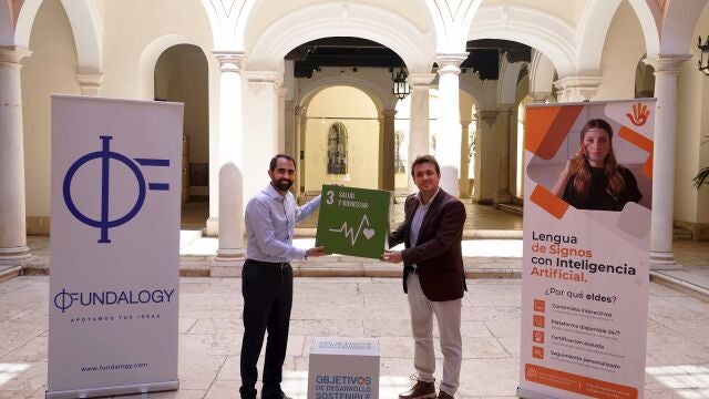 El director general de Fundalogy, Javier de Pro, y el CEO de Eldes, Fabián Curzio, han firmado el acuerdo por el que Fundalogy será parte del impulso financiero para el crecimiento de esta empresa, que impulsa la inclusión de personas sordas al facilitar el aprendizaje masivo de lengua de signos y mejorar la atención en empresas, servicios públicos y educativos.