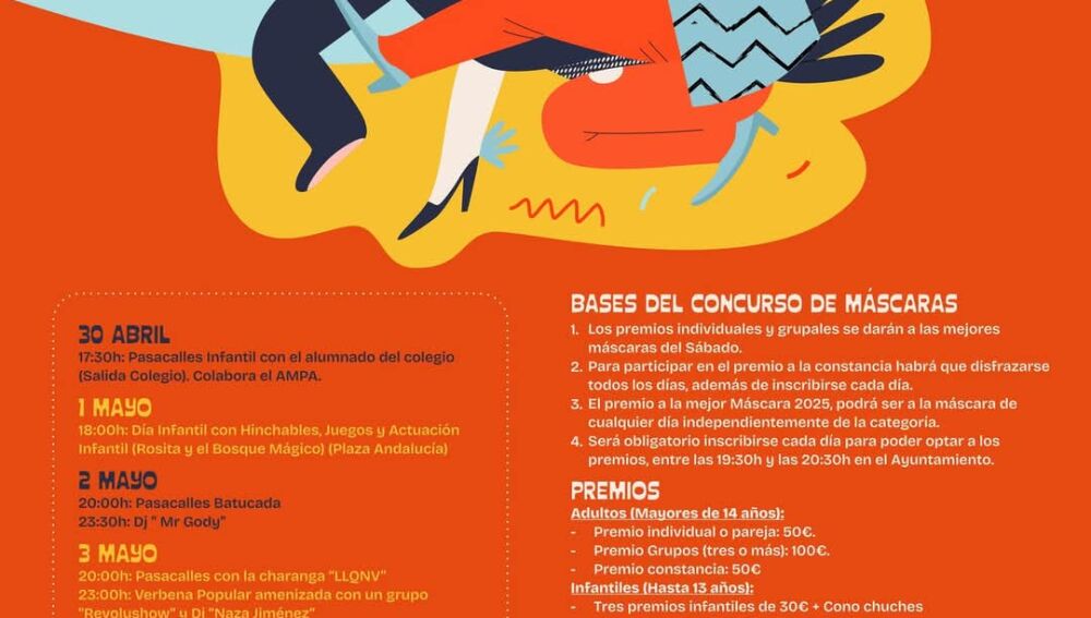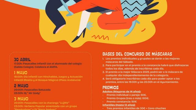 Las actividades comenzarán mañana por la tarde con un pasacalles infantil en el que participará el alumnado del CPR Almazara con la colaboración del AMPA. El 1 de mayo a partir de las 6 de la tarde se iniciará una fiesta infantil con hinchables y juegos en la Plaza de Andalucía, donde se representará el espectáculo ‘Rosita y el Bosque Mágico’. El viernes a las 8 de la tarde una batucada animará las calles del pueblo y desde las 23:30 horas en la Plaza de Andalucía un dj será el encargado de ambientar la noche.