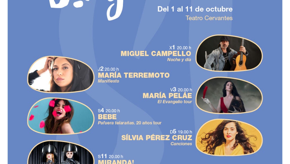 S!ngulares comienza mañana 1 de octubre con Miguel Campello y se cierra el sábado 11 con la actuación en el Teatro Cervantes de los bonaerenses Ale Sergi y Juliana Gattas, es decir, Miranda! El primer gran ciclo de la Temporada 2025-26 de los espacios municipales de Málaga recibe también en esta primera semana de octubre a María Terremoto (jueves 2), María Peláe (viernes 3), Bebe (sábado 4) y Sílvia Pérez Cruz (domingo 5). Es decir, un guiño a la mejor música actual desde una mirada eminentemente femenina en el que caben electropop, mestizaje, nueva canción y flamenco renovado.