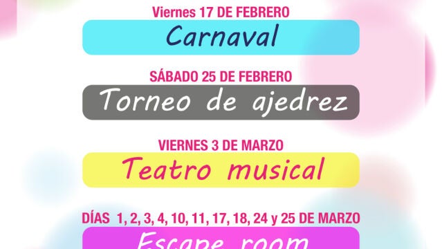 Una gran fiesta de Carnaval, torneo de ajedrez, escape room y un teatro musical harán las delicias de los más pequeños en las próximas semanas