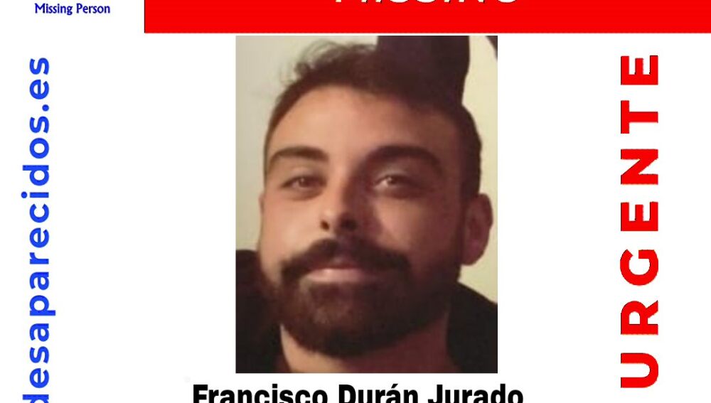Francisco Durán Jurado desaparecía este lunes 12 de febrero en Alhaurín de la Torre. La complexión física descrita para su localización es varón de 24 años, con pelo moreno, ojos verdes y barba.