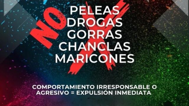 El local ubicado en Torremolinos tenía como "reglamento" la prohibición de "peleas, drogas, gorras, chanclas y maricones".