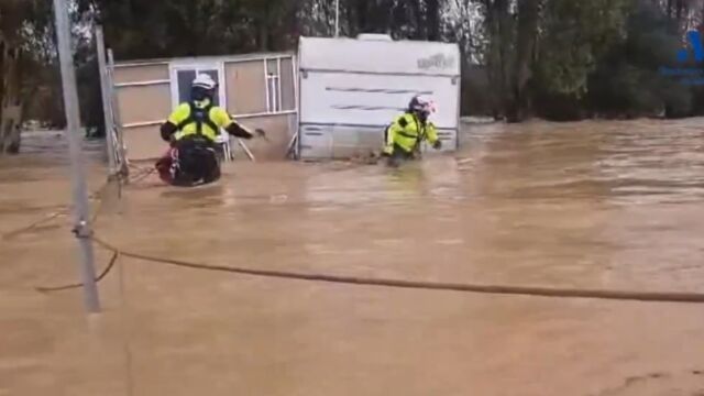 En torno a las 23:30 de la noche protección civil rescató a estas personas en la zona de Santa Amalia. También, 20 perros de una protectora. Se ha habilitado la Casa de la Juventud de Alhaurín de la Torre para poder reubicarlos.