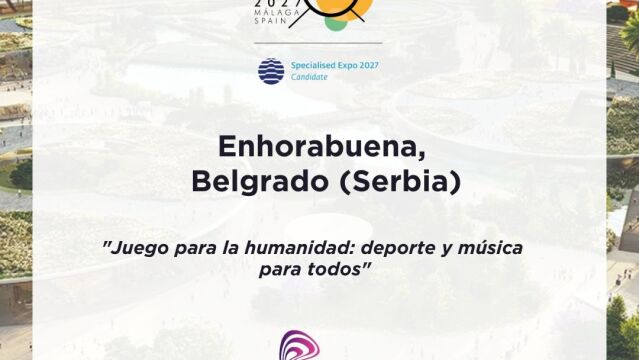 Málaga no albergará la Expo Internacional en 2027, después Belgrado (Serbia) se haya impuesto este miércoles a la candidatura española, que competía con la propuesta 'La era urbana: hacia la ciudad sostenible'.