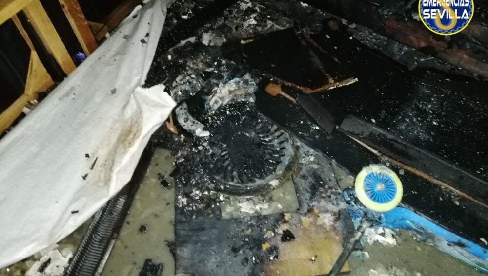 Estado en el que quedó el brasero de la mesa camilla | Emergencias Sevilla
