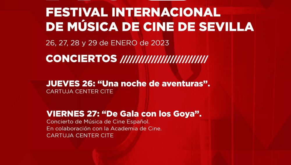 El primero de los conciertos tendrá el lugar el jueves 26 de enero en el Cartuja Center. Titulado 'Una noche de aventuras' e interpretado por la Real Orquesta Sinfónica de Sevilla, se compone de bandas sonoras de películas de este género, como 'Ben Hur' , 'Robin Hood' o'El señor de los anillos' con la dirección del maestro David Hernando.