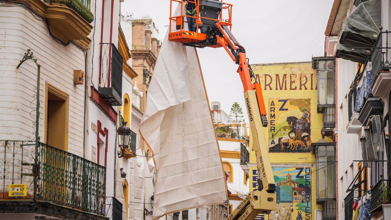 El Ayuntamiento comienza el entoldado por el entorno de la Campana y la calle Sierpes
