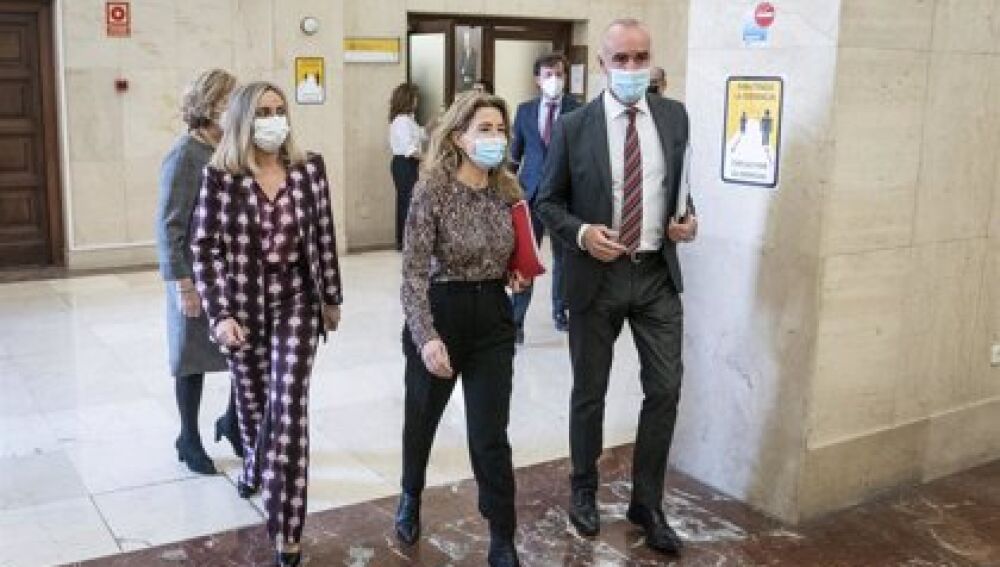 La consejera de Fomento, Infraestructuras y ordenación del Territorio de Andalucía, Marifrán Carazo; la ministra de Transportes, Movilidad y Agenda Urbana, Raquel Sánchez; y el alcalde de Sevilla, Antonio Muñoz. Imagen de Archivo | Europa Press