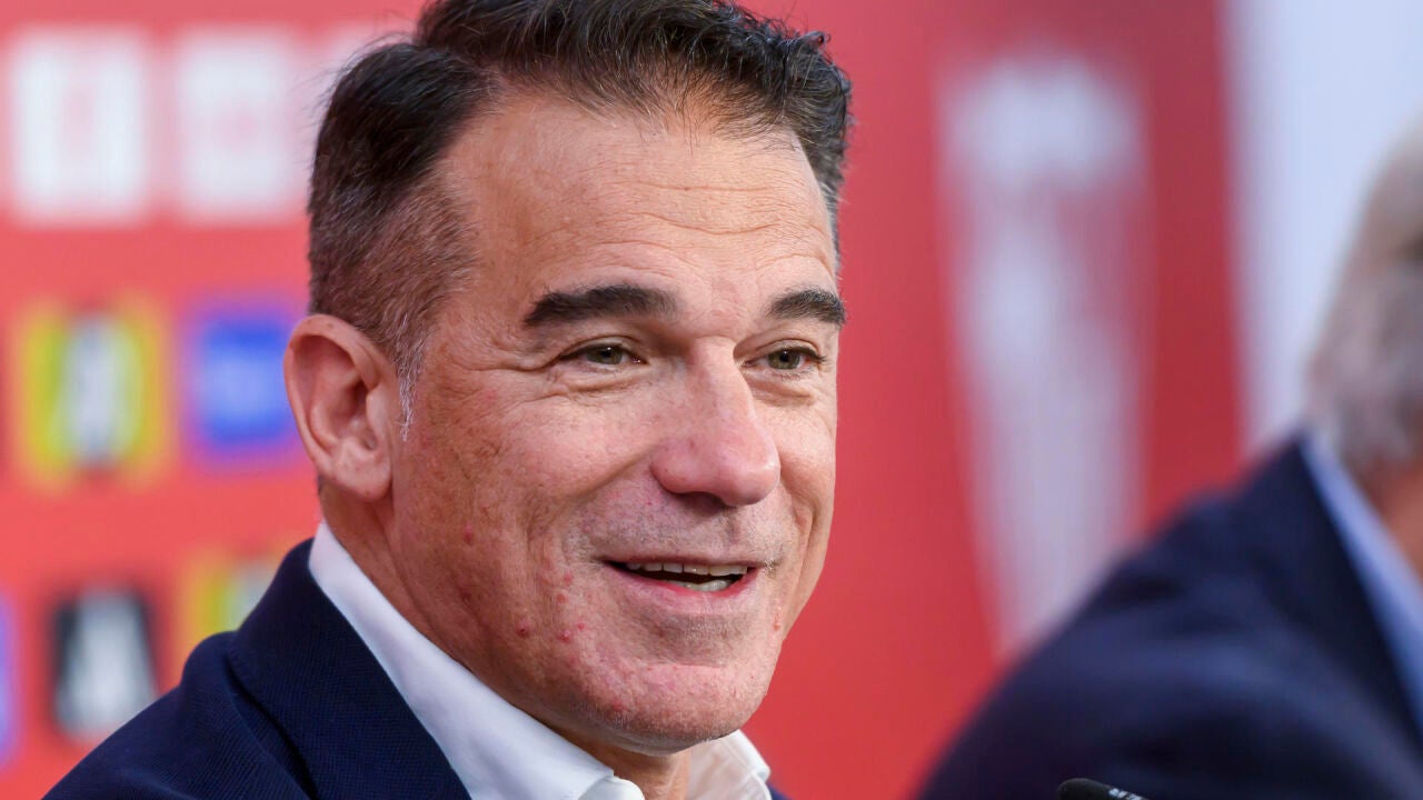 El nuevo técnico del Sevilla, Luis García Plaza, durante su presentación tras fichar hasta junio de 2027 en sustitución del argentino Matías Almeyda, destituido el lunes, este miércoles en el Ramón Sánchez Pizjuán | EFE/Raúl Caro