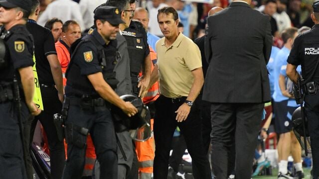 El entrenador del Sevilla FC, Julen Lopetegui, tras el primer partido de la fase de grupos de la Liga de Campeones que Sevilla FC y Manchester City jugaron este martes en el estadio Sánchez-Pizjuán, en Sevilla. EFE/ Raúl Caro. | EFE
