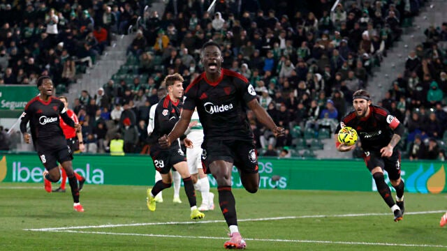 La insistencia del Sevilla, ante un Elche excesivamente relajado, encontró el premio a once minutos del final, cuando Akor recogió un rechace del poste tras un disparo de Sierra para marcar a placer. El gol animó al Sevilla, que fue creciendo en el partido apoyado en el poderío físico de Agoumé, Ejuke y Akor. Al Elche le entró el miedo a perder los puntos y el Sevilla acabó volcado sobre el área rival hasta que, ya en el último minuto, un centro de Sierra golpeó en el brazo despegado de Álvaro Rodríguez. El colegiado señaló penalti y Akor no perdonó para igualar un resultado que permitió al Sevilla sumar sus primeros puntos del año ante un Elche que fue de más a menos.