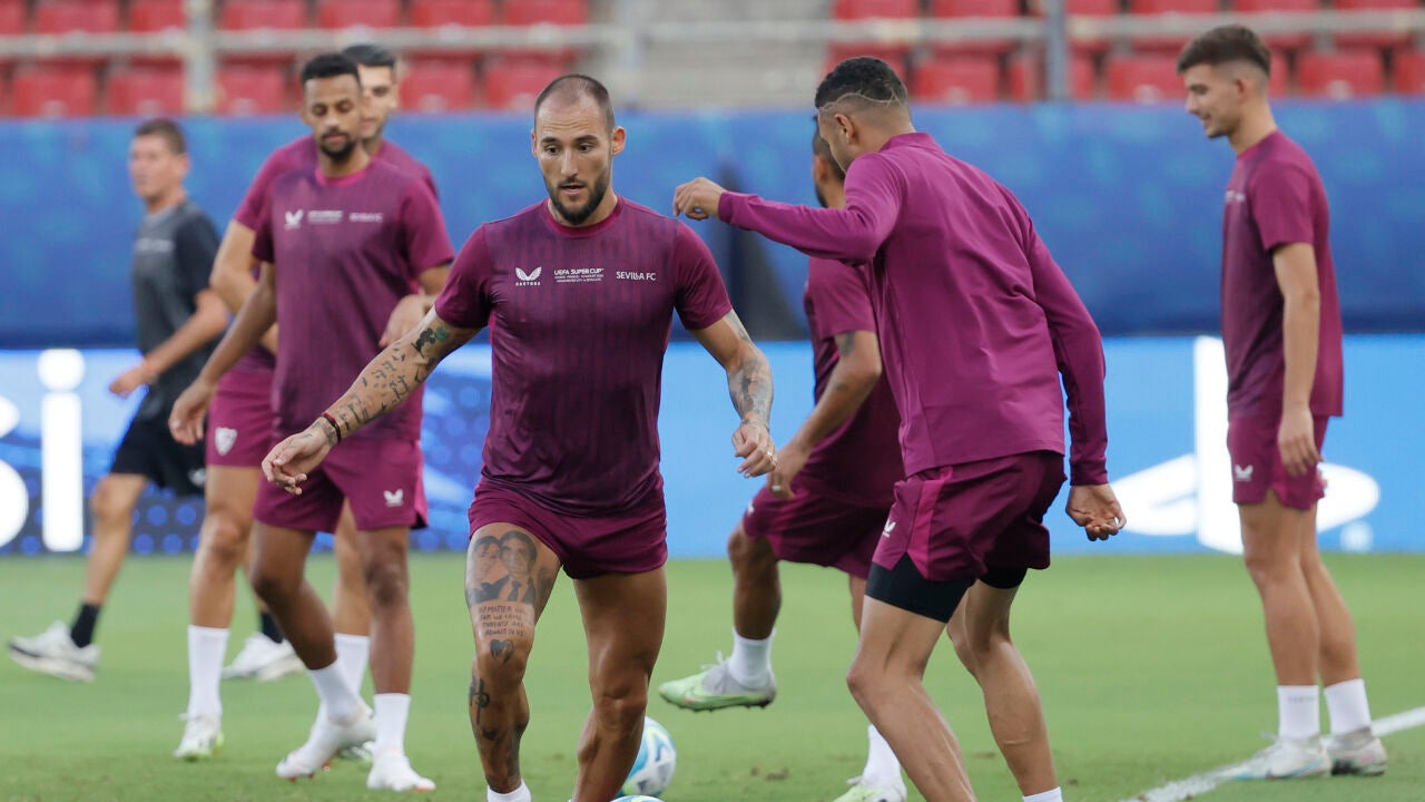 En el Sevilla, la baja de Fernando por gastroenteritis obliga a Mendilibar a modificar su plan. Sow podría jugar su primer encuentro como titular. Marcao y Nianzou se quedaron también en Sevilla, tocados. El once del Sevilla podría ser el formado por Bono; Navas, Badé, Gudelj, Acuña; Rakitic, Sow, Suso; Lamela, Ocampos y En-Nesyri.