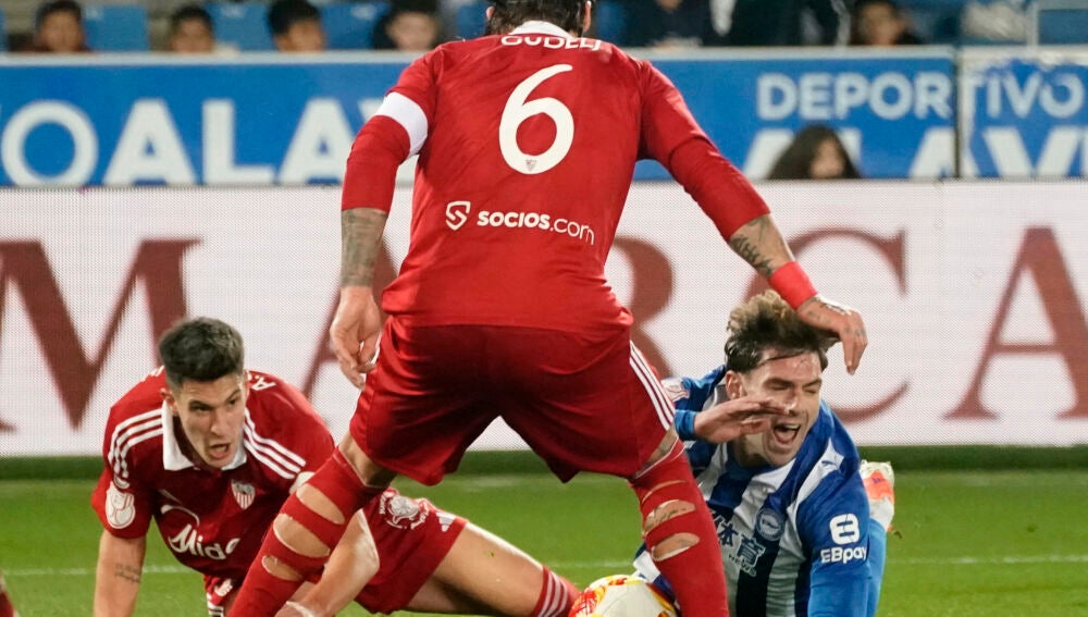 El choque se endureció con el 1-0. El Sevilla tuvo la suya en las botas de Alexis Sánchez, pero no acertó a empujar el balón con el tiempo cumplido y el Alavés se llevó un partido en el que se dejó dos lesionados, tras la retirada de Lucas Boyé, que solo aguantó 20 minutos en el campo, lo suficiente para forzar el penalti.