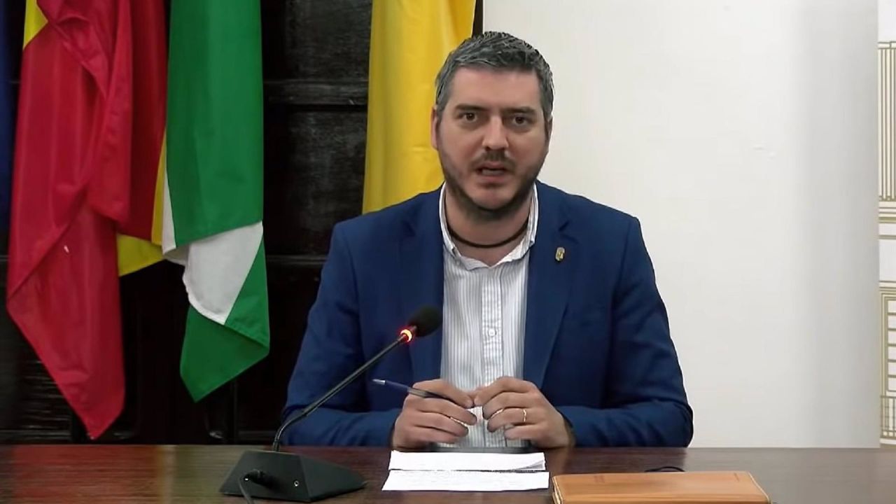El alcalde de la localidad, Francisco J. Martínez, en una comparecencia pública | AYTO. FUENTES DE ANDALUCÍA