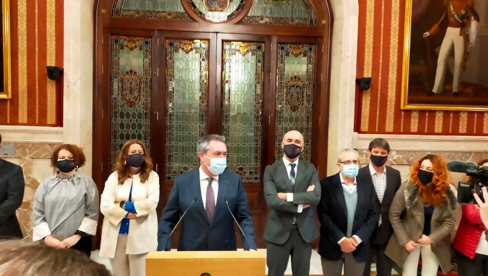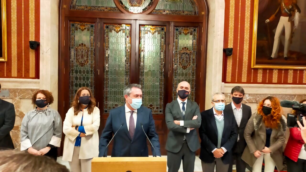 Juan Espadas ha celebrado este martes una rueda de prensa tras una reunión con el Grupo socialista del Ayuntamiento hispalense, después de que este pasado lunes el pleno aprobase inicialmente el presupuesto de 2022, con los votos a favor de los socialistas y los ediles de Adelante y el voto contrario de PP, Cs y Vox, toda vez que previamente había ceñido a la aprobación del nuevo presupuesto su anunciada renuncia a la Alcaldía para centrarse en su papel de secretario general del PSOE andaluz y candidato socialista a la Presidencia de la Junta de Andalucía.