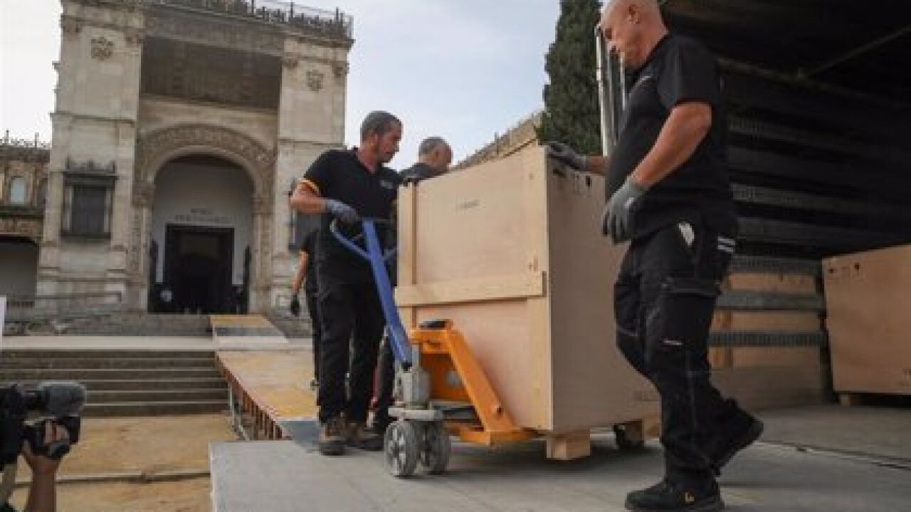 Traslado de piezas del Museo Arqueológico de Sevilla al centro logístico de San José de la Rinconada. | Europa Press