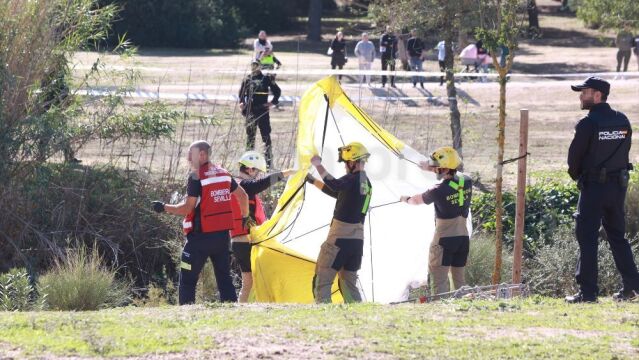 Efectivos de emergencia en el dispositivo desplegado por el hallazgo de un cadáver en la laguna del Parque del Tamarguillo de Sevilla | Europa Press