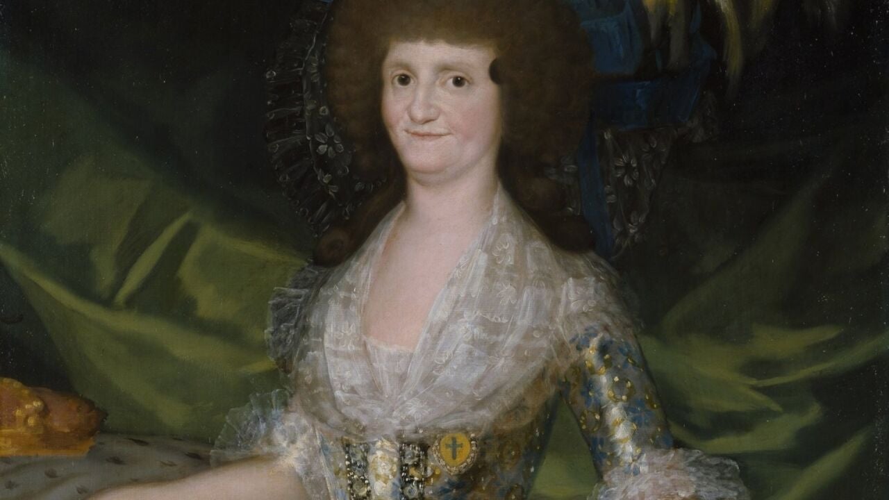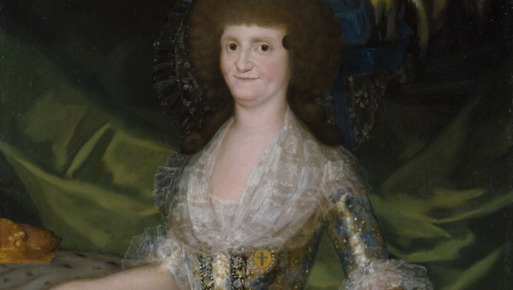 En el mueble de la izquierda aparecen los mismos atributos que se observan en el retrato de Carlos IV, la corona y el manto de armiño. Ambas pinturas tuvieron un coste de 4.000 reales de vellón, tal y como se recoge en el recibo firmado por Goya el 11 de mayo de 1789, y en el que se refleja el acuerdo aceptado por el pintor de realizar las obras sin la participación de sus ayudantes.