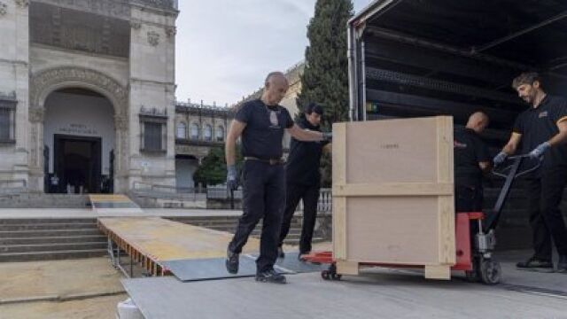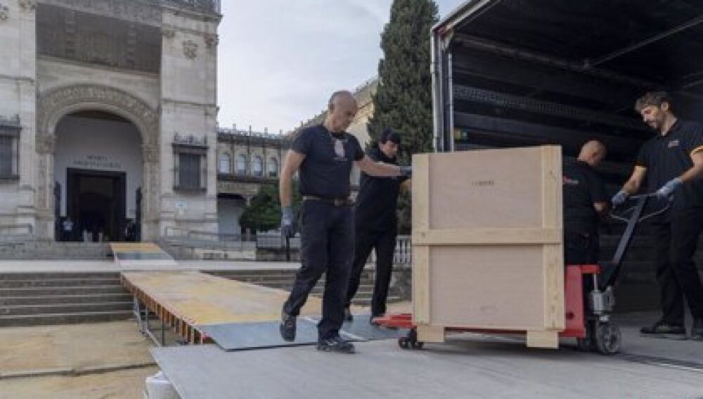 Operarios trasladan del Museo Arqueológico las piezas embaladas con motivo del proyecto de rehabilitación integral del edificio | Europa Press