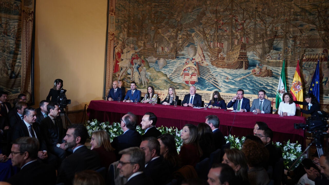 El Real Alcázar de Sevilla ha acogido este lunes la conmemoración del 40 aniversario de la Constitución del Parlamento de Andalucía en 1982. La misma sala donde hace cuatro décadas se constituyó la institución y en la que Jesús Aguirre, el presidente del Parlamento ha aprovechado para defender el espacio parlamentario como el lugar donde solventar las dificultades de los ciudadanos con diálogo. Desde la capacidad de llegar a acuerdos, como esencia de la democracia. Ha defendido que es más lo que nos une que lo que nos separa y que la comunidad es imprescindible en la historia y el futuro de España.