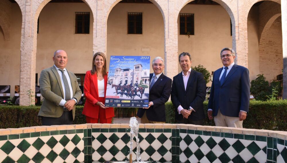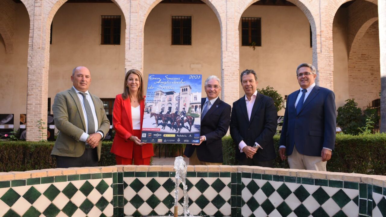 La delegada de Deportes y Promoción de la Salud del Ayuntamiento, Silvia Pozo, ha asistido esta mañana a la presentación del cartel del evento, que al igual que en las últimas ediciones recoge varios ejemplares de angloárabe sobre un monumento emblemático de Sevilla, en esta edición el Pabellón Mudéjar de la Plaza de América. Junto a Silvia Pozo han participado también en la presentación del cartel Francisco Gaviño, presidente de la Asociación del Caballo Angloárabe, organizadora del evento; Francisco Juárez, delegado territorial de Fomento, Articulación del Territorio y Vivienda de la Junta de Andalucía y Manuel Campuzano, director del Parque del Alamillo; y Francisco Juárez Esta edición de la Gran Semana Angloárabe de Sevilla destina el mayor presupuesto de su historia a los distintos concursos que se celebran, 30.000 euros en total, e incluye actividades para todos los públicos, como paseos en ponis para los más pequeños. Asimismo, para promocionar la hípica, contempla también entradas gratuitas.