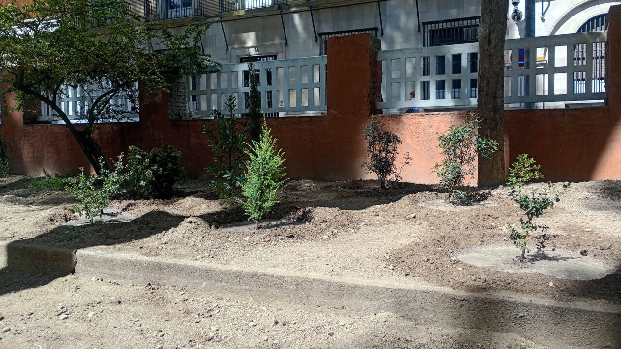 Además, se está incorporando una nueva banda arbustiva de estilo naturalista en el borde del pinar junto a la calle San Jorge, con especies propias de los sotobosques mediterráneos del entorno, cuyo desarrollo se mantendrá natural, sin someterse a recortes propios de setos formales, con el objetivo de recrear un espacio de sotobosque autóctono y enriquecer la biodiversidad del parque. En total, se están plantando 147 ejemplares: 77 de cornejo, 10 de lentisco, 10 de durillo, 10 de madroño, 10 de aligustre, 10 de coscoja, 10 de enebro y 10 de sabina.