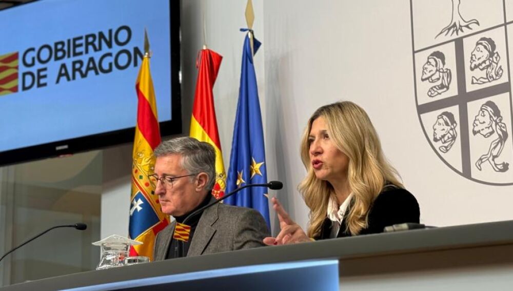 Los consejeros Manuel Blasco y Mar Vaquero en la rueda de prensa del Consejo de Gobierno | Gobierno de Aragón