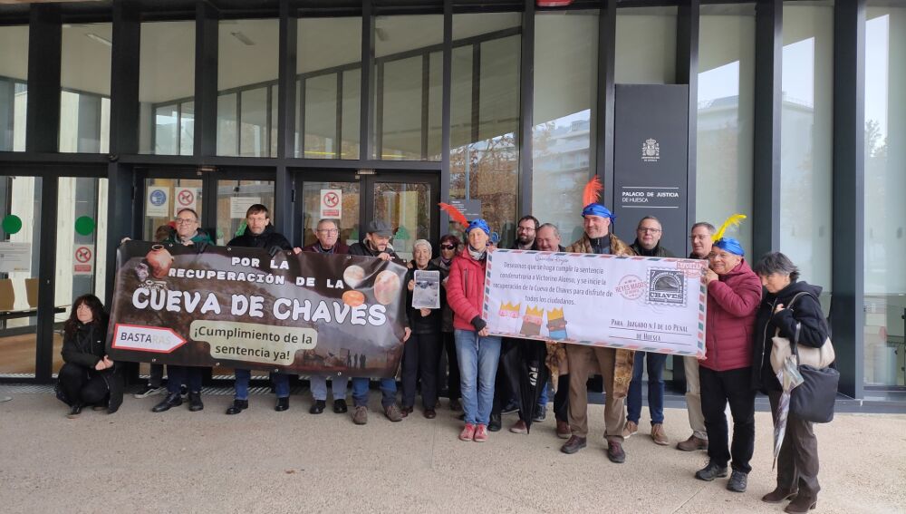 La Asociación para la Defensa del Patriminio de Aragón (APUDEPA) junto con otras entidades como Ecologistas en Acción, la Plataforma para la Defensa del Patrimonio de Huesca y la Asociación Valle de la Gloria, ha hecho entrega en el juzgado de Huesca de una simbólica carta a los reyes magos en la que muestran su deseo de que se haga cumplir “la sentencia condenatoria a Victorino Alonso y se inicie la recuperación de la Cueva de Chaves para disfrute de todos los ciudadanos”.