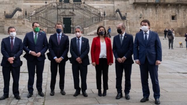 Los presidentes de Aragón, Galicia, Castilla y León, Castilla-La Mancha, Extremadura, Asturias, La Rioja y Cantabria han firmado, en Santiago de Compostela, una declaración institucional, que incluye 35 puntos.