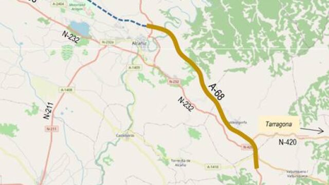 En enero de 2019 se aprobó el estudio informativo de la Autovía A-68 entre Valdealgorfa y Fuentes de Ebro, con una longitud de 88,5 km. A los efectos de redactar los correspondientes proyectos, se ha previsto la división de su recorrido en seis tramos, siendo el tramo Ventas de Valdealgorfa-Alcañiz el ubicado más al Sur.
