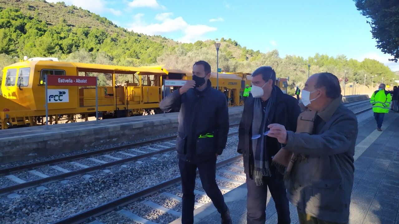 Las obras de mejora de la línea ferroviaria Zaragoza-Teruel-Sagunto-Valencia avanzan a buen ritmo, una infraestructura estratégica para unir el corredor Cantábrico con el Mediterráneo. Así lo han comprobado esta mañana el director general de ADIF, Àngel Contreras, y el presidente de la APV, Aurelio Martínez, que han visitado los apartaderos de Estivella en la provincia de Valencia y el de La Puebla de Valverde en Teruel.