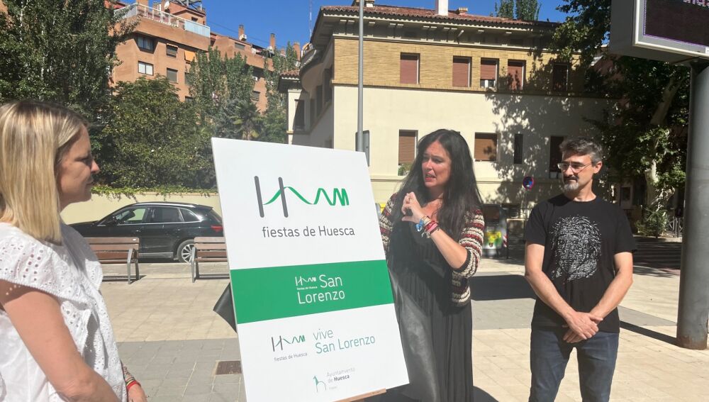 En San Lorenzo la imagen está protagonizada por una serpentina de color verde que surge de los dos pilares de la H de Huesca, aunque ese elemento irá cambiando en forma o color cuando se trate de otras celebraciones festivas, El nuevo logotipo aparecerá en carteles, banderolas y otros elementos decorativos de la ciudad con la idea de engalanar la ciudad.
