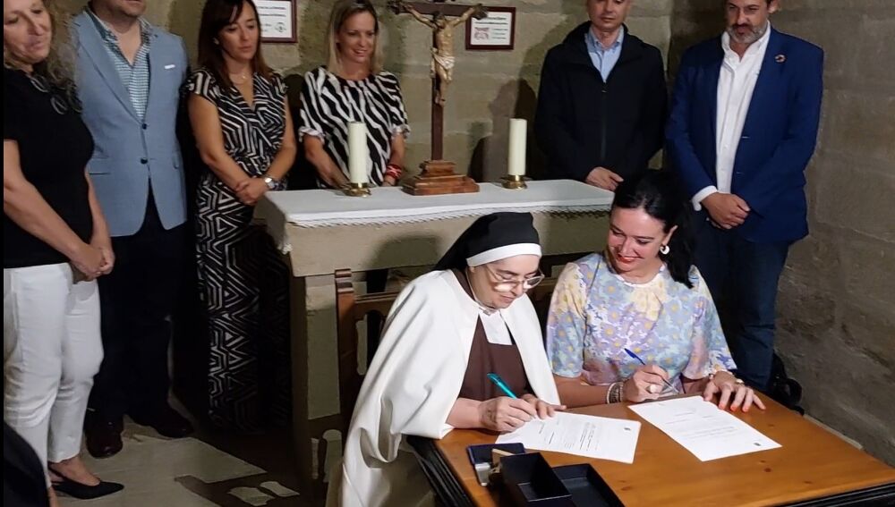 Con motivo de la festividad del Arcángel San Miguel, la Alcaldesa de Huesca, Lorena Orduna, ha realizado esta mañana, tras la misa presidida por el Obispo de la Diócesis Julián Ruiz, la tradicional entrega de un céntimo de euro a Sor María Gloria de Dios, Madre Superiora del Convento de la Encarnación de Carmelitas Calzadas de Huesca.