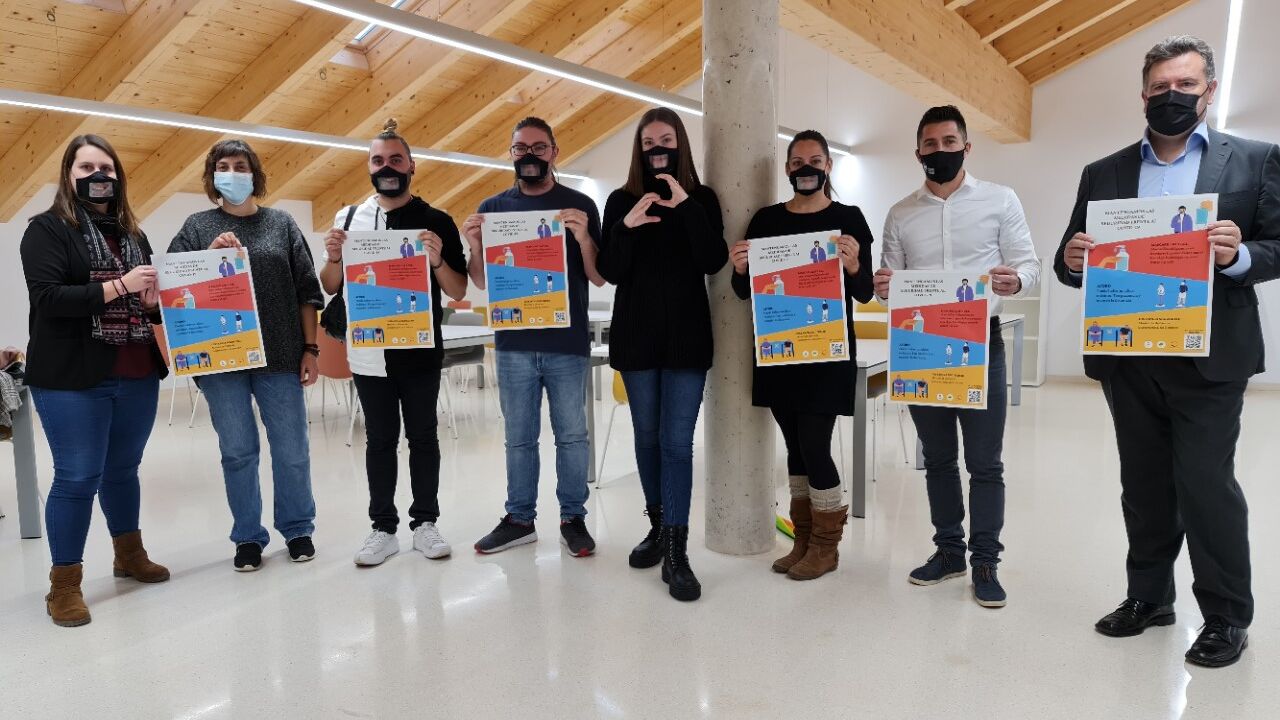 Los carteles se van a colocar en distintos puntos de la ciudad. Se trata de carteles accesibles para las personas sordas que incluyen un código QR que redirige a un vídeo explicativo del uso de la mascarilla en lengua de signos realizado por alumnado del ciclo superior de Mediación Comunicativa del IES Francés de Aranda.